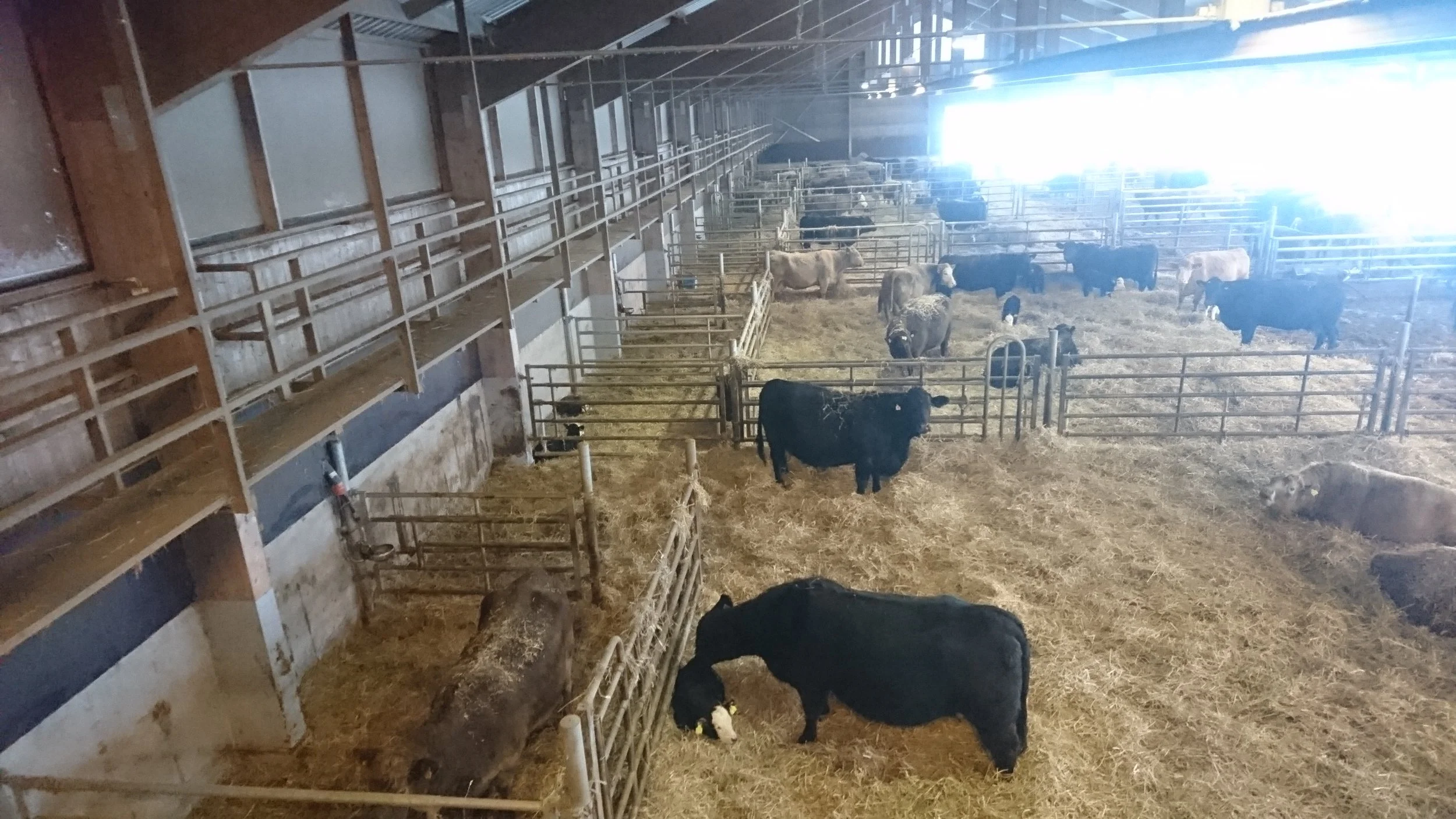 Våra djur går på djupströbädd som ströas dagligen med takhängd halmrivare.